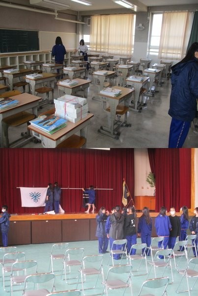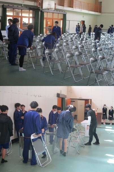 半月前の卒業式準備同様、生徒の皆さんは自分たちの役割を