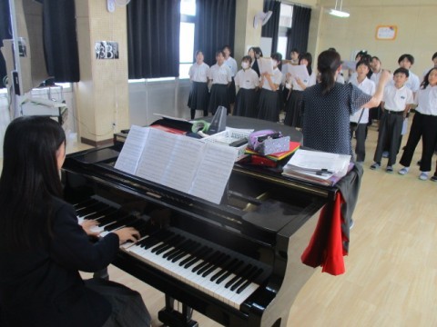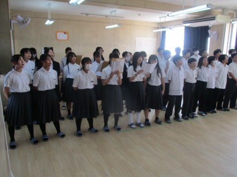 音楽の授業ではパート練習に加えて合唱練習を始めています。
