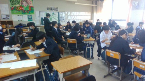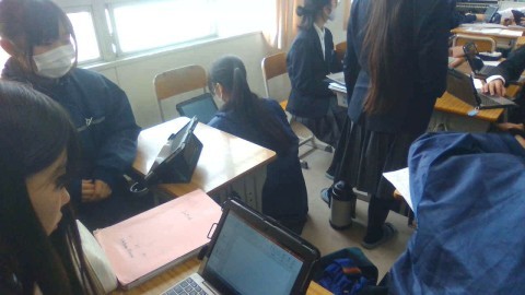2年生の国語は普通教室と旧パソコン教室に分かれて
