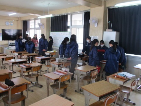 分かれて授業を進めます。朝方は晴れていましたが、しだいに雲が広がりはじめ、