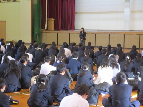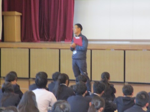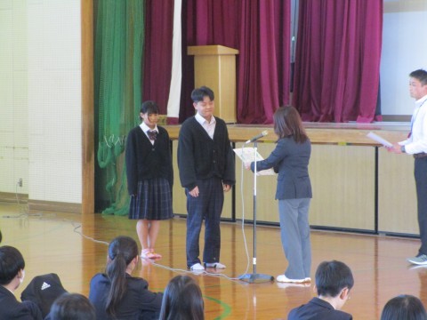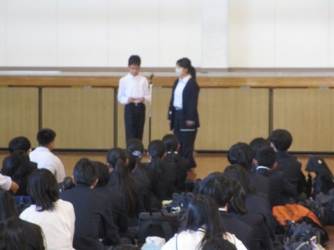 全校集会では,校長先生と生徒指導の先生のお話の後,生徒会と図書委員会からの連絡がありました。
