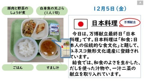 2年間続いた万博献立の最終は開催国日本の紹介です。