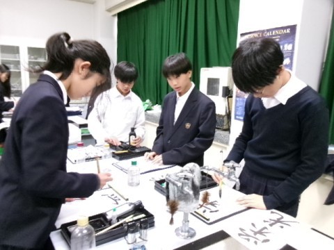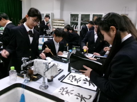 2組の国語の授業の様子です。今日は行書に挑戦しました。点画や筆順を意識して、滑らかに書けましたか。次は「来年の目標・抱負」を書きます。何を書くか考えてきましょう♪