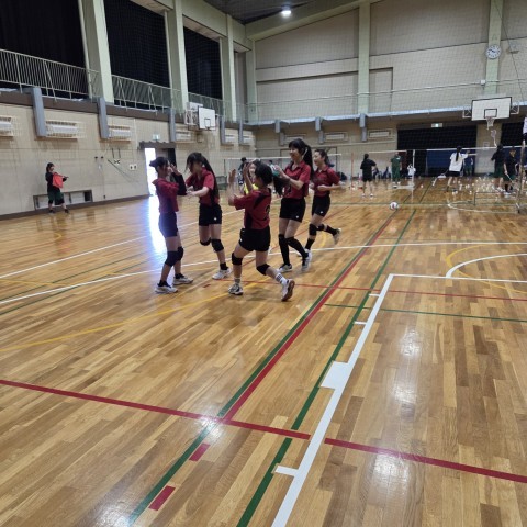月州中学校でSAKAI・WEST CUPの2日目が行われました。結果は 1敗1分と悔しい結果になってしまいましたが、格上のチーム相手からセットを取ることができ、子どもたちは着実に成長しています。まだまだ気持ちで負けたり焦ったりすることもありますが、落ち着いて自分たちのバレーができている場面も増えてきました。この調子でバレーが上手くなる楽しさを感じながら、今まで負けた悔しさを忘れず、努力していきましょう。応援に来てくださった保護者の皆様、また、日頃の部活動にご理解・ご協力いただいている保護者の皆様、ありがとうございます。これからも子どもたちと努力して参りますので、応援よろしくお願いします。