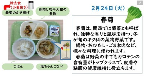今日のかき揚げには、春菊が入っていました。