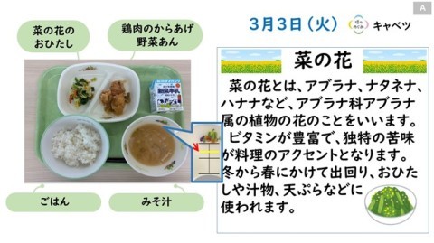 クラスで「菜の花のおひたしだよ」というと、