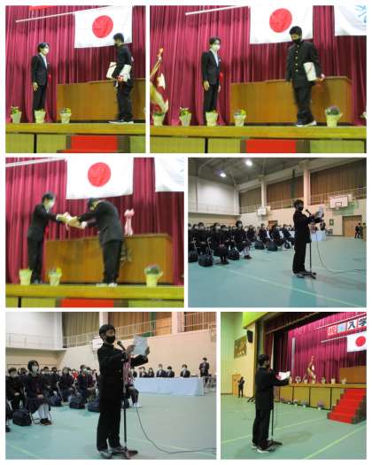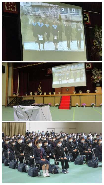 また,式に参加できない生徒会代表者が,ビデオでメッセージを送りました。