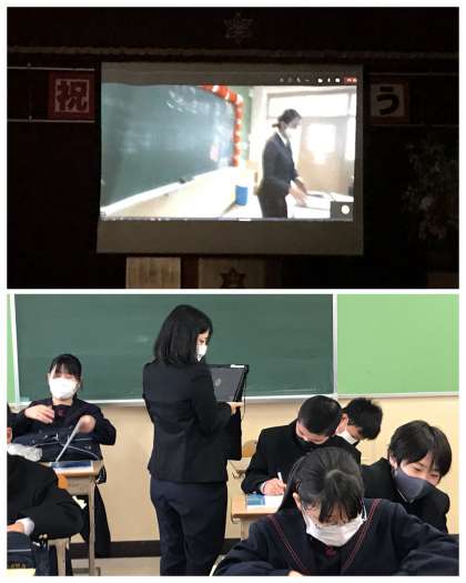 教室での様子は,体育館にいる保護者のみなさんにライブ配信をしました。