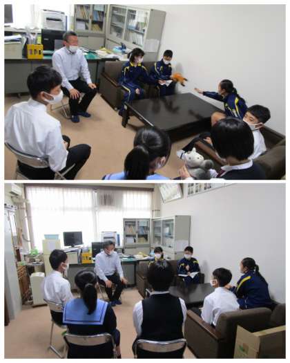 今日の昼休みの時間に,生徒会役員との懇談会を行いました。以前は,昼食をとりながら話をしたのですが,今回はコロナのために一緒に昼食は取りませんでした。今年度の前期もコロナのために実施していませんでした。