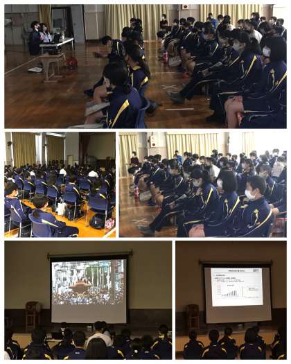 11月に実施する校外学習の事前学習として,堺市の観光課に方に来ていただき,堺の街や歴史,産業について話をしてもらいました。