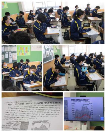 コロナの感染拡大と関連させながら,「自由」と「制限」について学習しています。