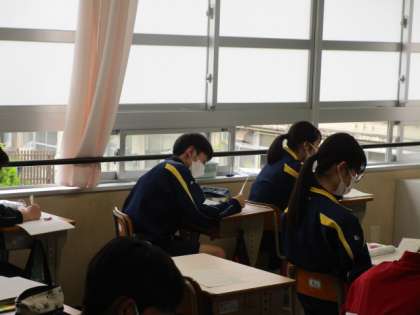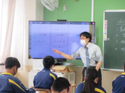 3年生の社会科の授業の続きです。マスクをしているのでわかりにくいですが,しっかり発表していました。生徒たちは,それぞれの政策を理解していて,理解しているからこそ,自分なりにその重要度をみんなに説明できていました。言葉を単に覚えるのでなく,その成果だとか,与えた影響だとか,いろんなことを考えて発表できていました。こういうことができるようになり,今の政府の政策の是非とかも考えられるようになるのでしょうね。