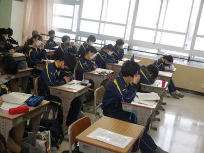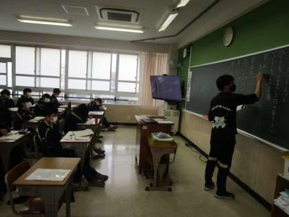 2年生の国語の授業の様子です。「アイスプラネット」の小説を学んでいました。主人公の心の動きがせつなかったりしますね。しっかり読み込んで,登場人物の心の動きが感じられるようになると,読書は楽しくなりますよ。自分の世界とはまた違った世界を体験できます。頑張って,国語を学びましょう。世界は広く楽しくなります。