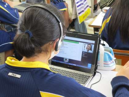 2つ目がPCの画像のように,生徒たちのPCの右上に,その生徒が会話している先生の画像が映し出されます。発音など,いろいろなアドバイスをしてくれます。こんな感じで1対1のオンライン英会話の授業を行っていきます。