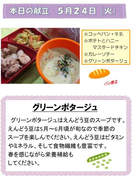 「ポテトとハニーマスタードチキン」は以前中学生が考えたアイディア料理でしたが、好評だったのでそれからも給食メニューとして出されています。
