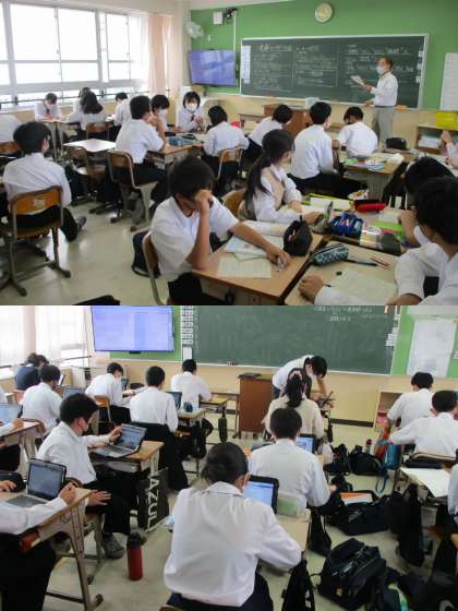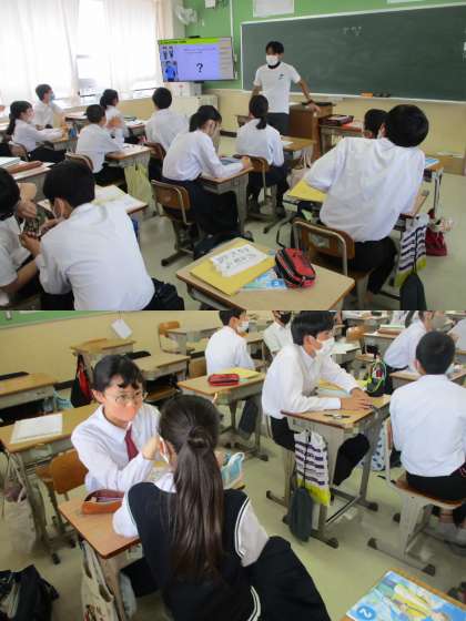 英語の授業では、自己紹介を英文で作成しているクラスもありました。
