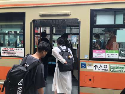 バスの前で