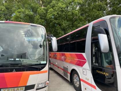 新大阪駅を出発します。到着予定時間は午後5時45分くらいを予定しています。また、もう少し近くなりましたら、あらためて到着時間をホームページでお知らせします。