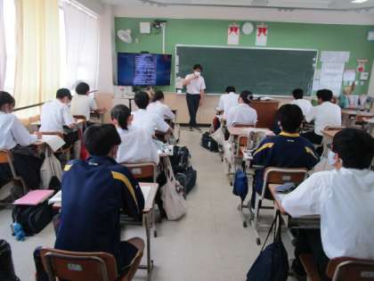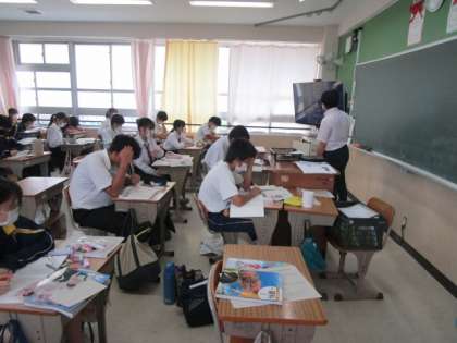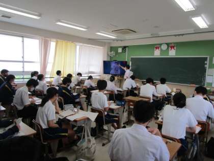 3年生の社会の授業の様子です。ヒトラーが当時,民衆を掌握していった方法などについて学んでいました。