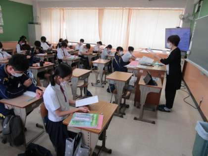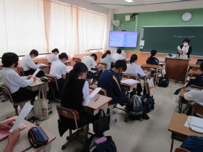 3年生の別のクラスでの英語の授業の様子です。こちらは,単語を学んでいるところでした。さすが,3年生。とても真剣でした。この夏が勝負ですね。頑張ってください。