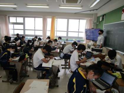 3年生の理科の授業の様子です。遺伝の学習をしていました。DNAと遺伝子は何が違うか?と質問され,生徒たちはさっと答えていました。おお。感動でした。