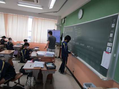 3年生の数学の授業の様子です。2次方程式の計算を学習していました。頑張ってください。