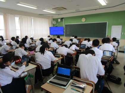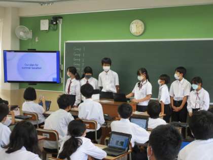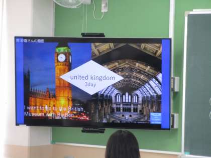 1年生の英語の授業です。旅行のプランのプレゼンテーションをしました。