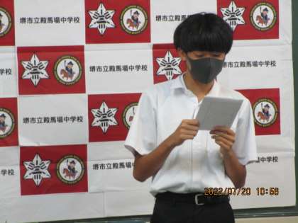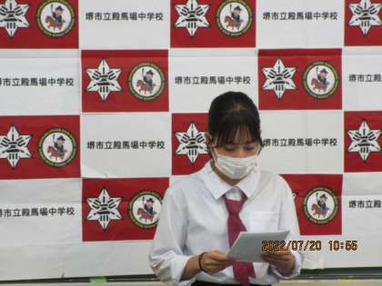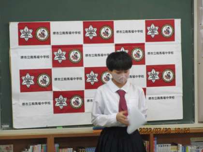 生徒会からの激励の言葉や,代表部活のキャプテンから決意の言葉をもらいました。みんな立派です。大会頑張ってくださいね。期待しています。