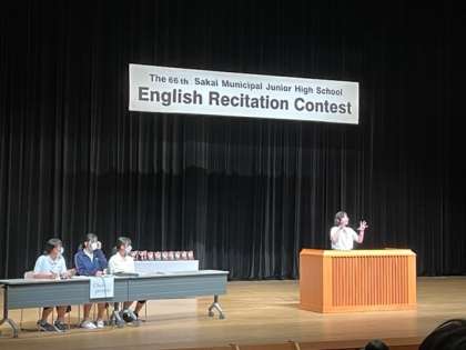 堺市英語暗唱大会が開催されて、本校の三年生が出場しました。