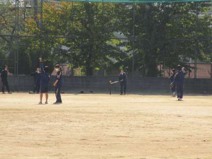 ちょうど,生徒がうまくボールをキャッチして,1塁へ送球してアウトにする場面を見させてもらいました。上手です。(すみません。写真ではわかりずらくて・・・。)