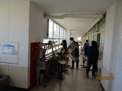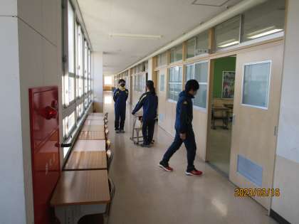 卒業後、今日、教室の清掃で戻って来てくれています。