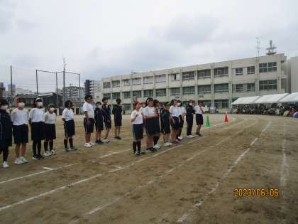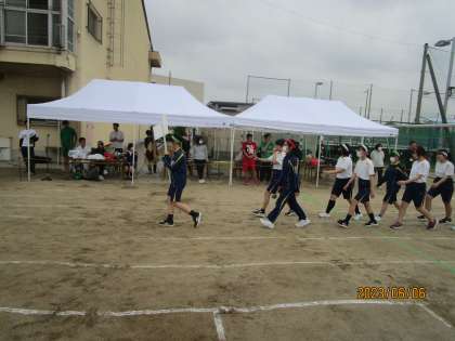 次は管楽部です。楽器が雨でぬれないように、今日はエアー楽器でした。