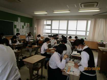 3年生が校内学力診断テストを今日受けます。その前の最終調整の自習の時間の様子です。ゆったりと笑顔で調整していました。