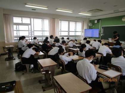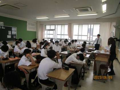 学活の様子です。学校生活アンケートなどに取り組んでいました。