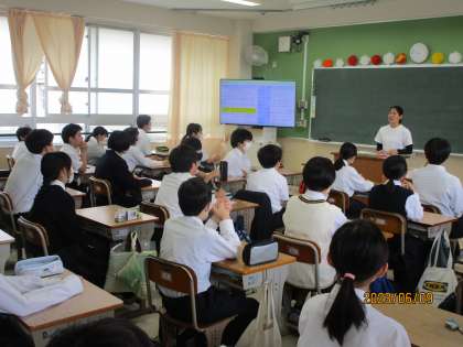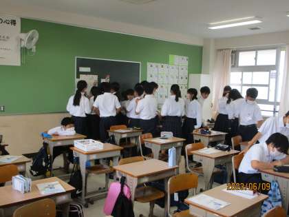 1年生の学活の様子です。学校生活アンケートや、校外学習のバスの座席決めなどに取り組んでいました。校外学習楽しみですね。