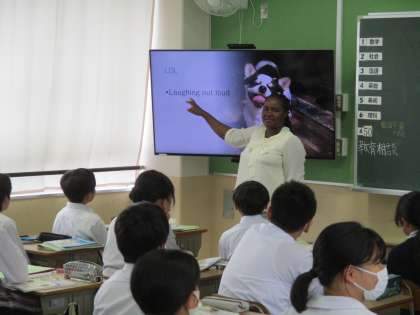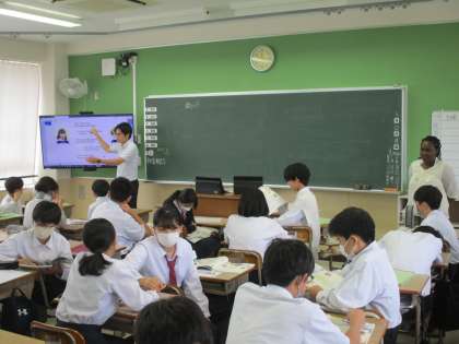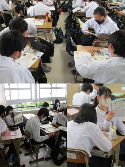 授業の冒頭に、英語で電話のやりとりのSpeakingに、相手をスウィッチしながら取り組みました。