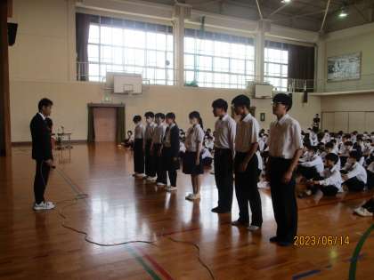 校長の話で、今日は「これからどういきていくか」という重い話をしました。自分の苦い体験談を例にあげ話したのですが、とても真剣に聴いてくれました。話をすればするほど、生徒たちの顔が少しずつ上がってきて、目が真剣に変わってくるのを感じました。あまりに真剣すぎて緊張するほどでした。そんなに感じてくれて、生徒たちに対して感謝の気持ちでいっぱいです。