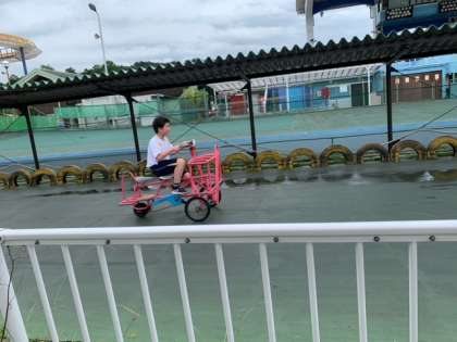 変わり種自転車に楽しんで乗車中です。