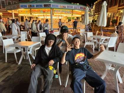 ミッフィのプロジェクションマッピングをしていました。そこにいてました。三人で撮影!
