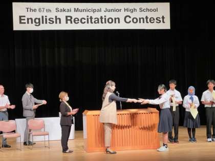 本日、堺市英語暗唱大会が開催され、本校生徒がなんと、TOP10に入賞しました!