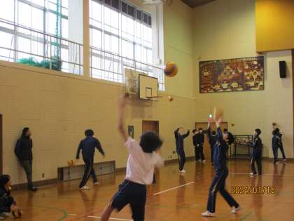 バレーボールの学習をしていました。