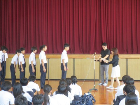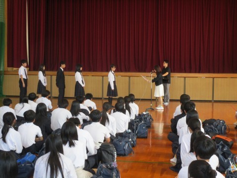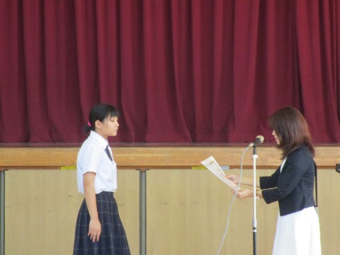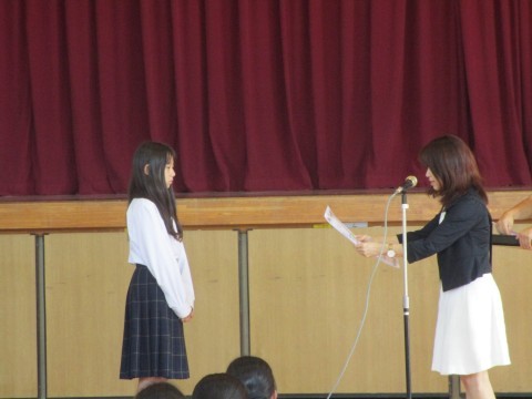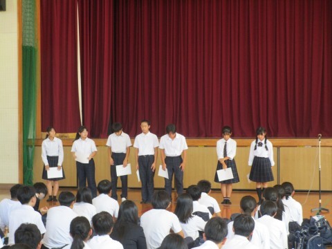 剣道部,陸上部,華道部,部展,理科展とたくさんの賞状伝達がありました。