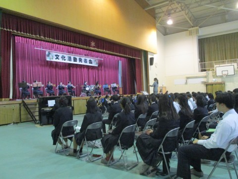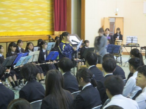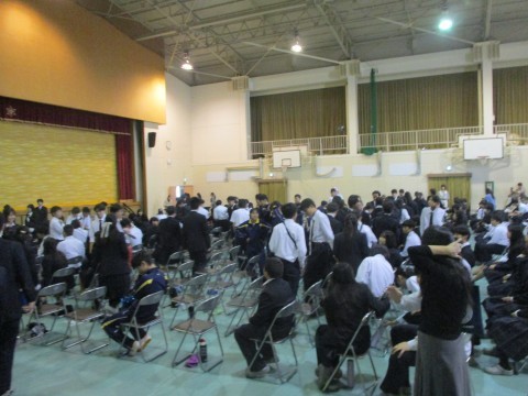 1年生、3年生の合唱コンクールの結果発表の様子です。