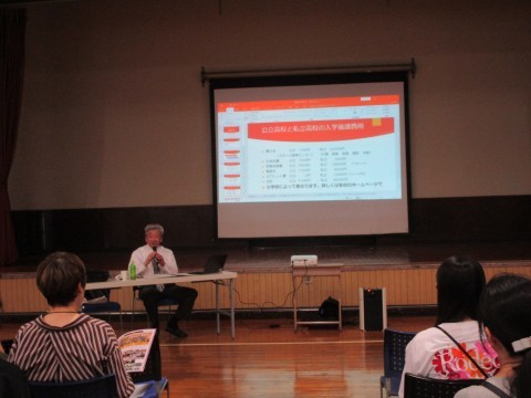 私立の浪速高校と公立の東百舌鳥高校の2校の高校の先生をお招きし,3年生の保護者の皆様むけにお話をいただきました。