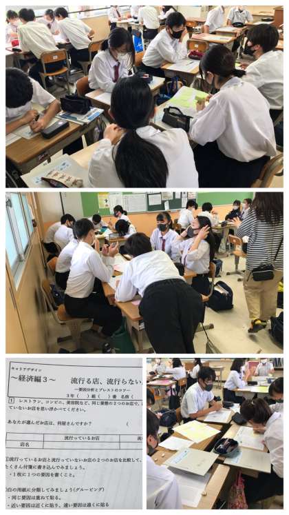 キャリアデザインについての授業です。流行っている店、流行っていない店について考えています。