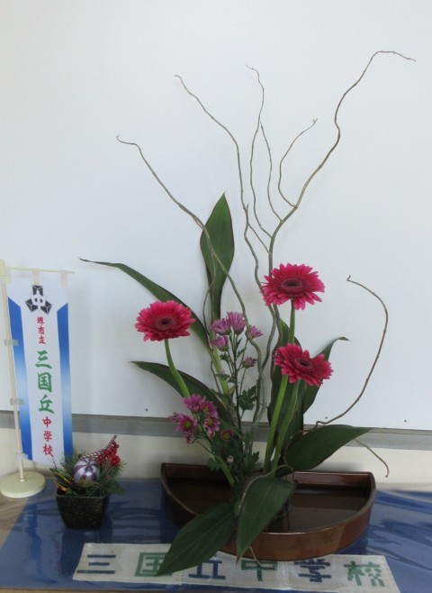 写真は、日頃からご指導いただいている先生による生け花の作品です。