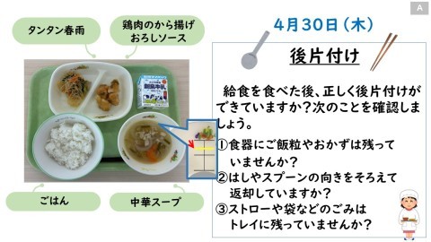 保護者の皆様には、エプロンや三角巾、マスク等のご準備をいただき、ありがとうございます。