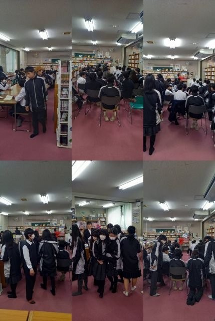 PTA主催の読み聞かせ。お昼休みの図書館解放の時間にPTAの皆さんによる読み聞かせを実施しました。