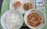明日4月17日(金)の献立は、ご飯・牛乳・麻婆豆腐・揚げギョーザ・もやしのからしあえです。