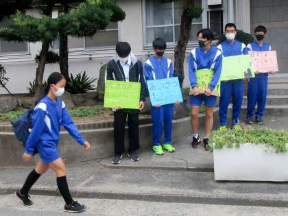 本日の「朝のあいさつ運動」は,8のつく日ですので全風紀・学代,生徒会と担当の職員のスペシャルで行いました。ありがとうございました。次回もよろしくお願いします。